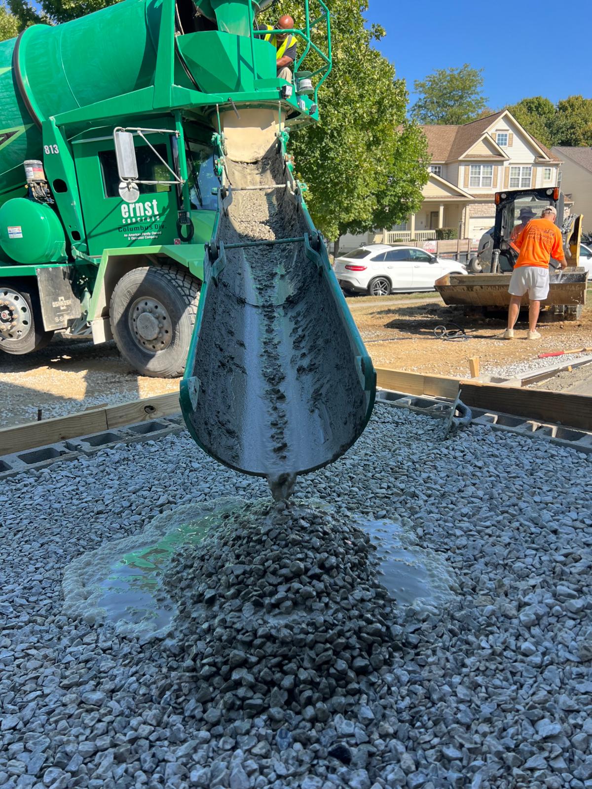 Our crew started by carefully removing all the old concrete. We had to be extra careful around the foundation and make sure we did not damage anything on the property. Once everything was cleared out, we prepped the base and got it ready for the new concrete pour.