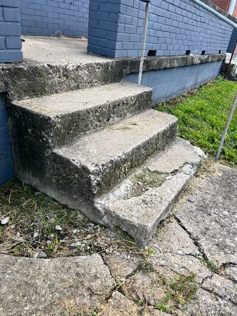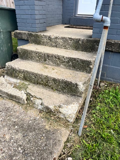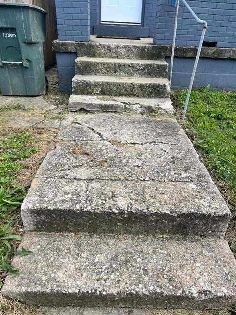 When we first got to the property, you could see the concrete steps were in rough shape. Years of weather exposure had taken its toll. The steps were cracked, crumbling at the edges, and covered in moss and stains. The whole entrance just looked worn out and unstable. Walking up those stairs was actually dangerous, especially when it rained or during winter months.
